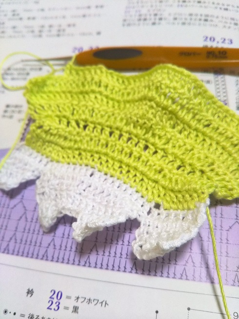 本当はフリルの部分を黄緑で編むんですが間違えました💦
